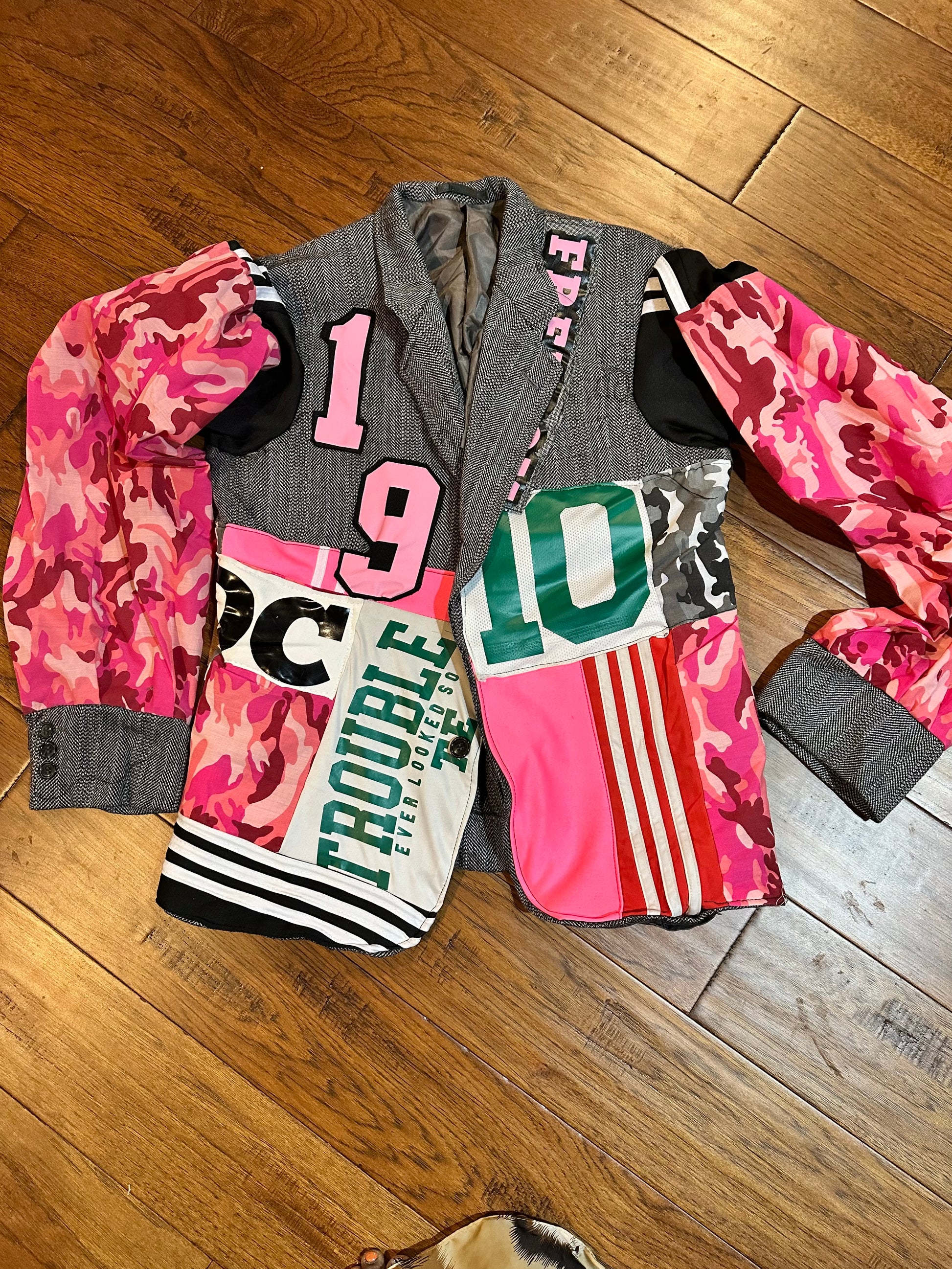 • Mix of blazer fabric + athletic jacket materials